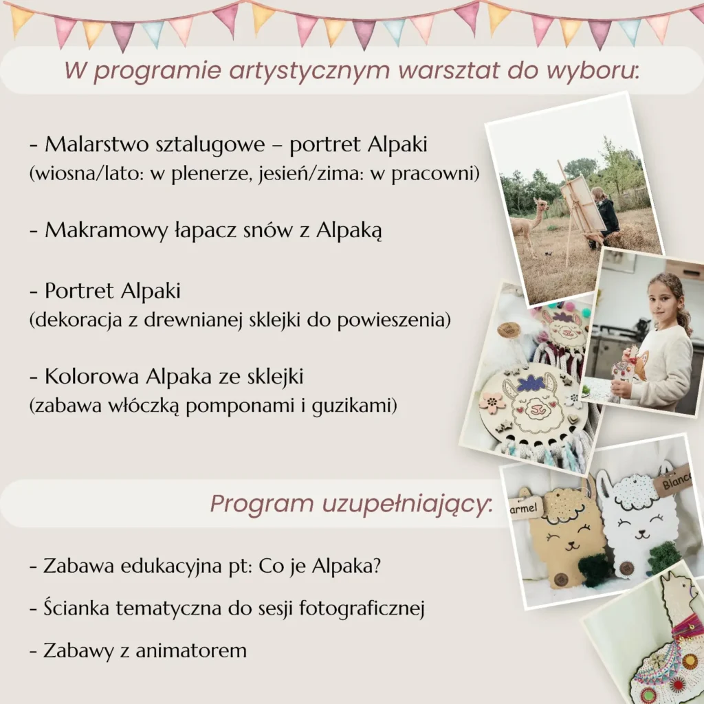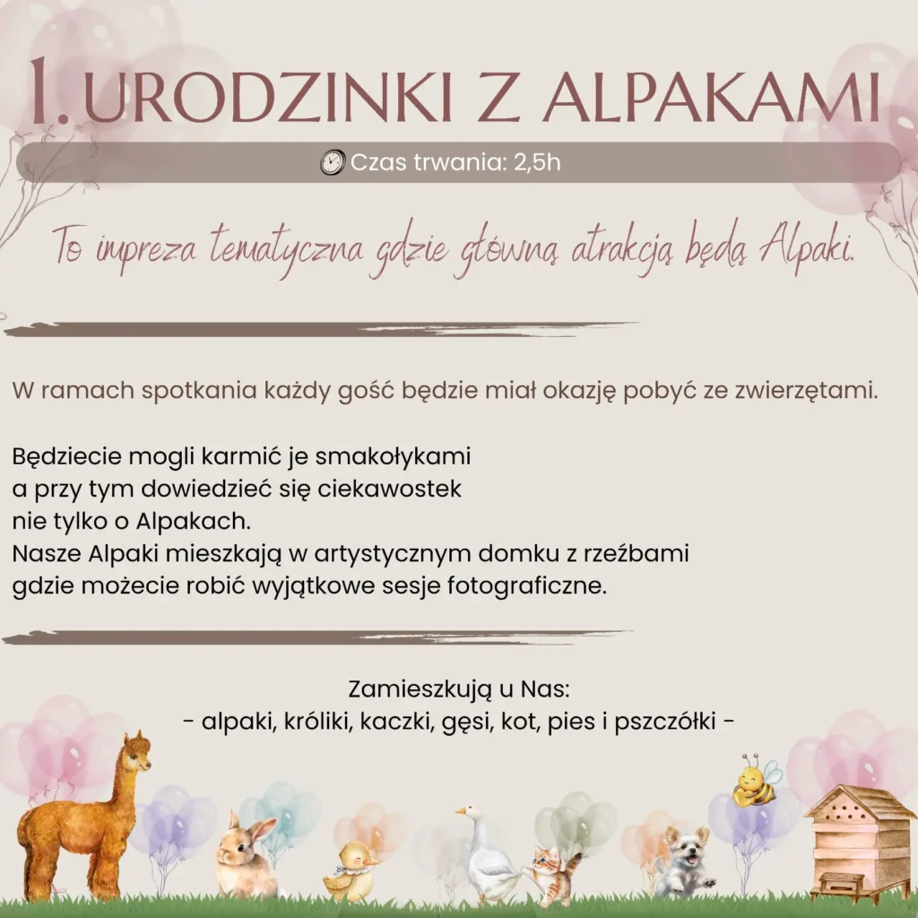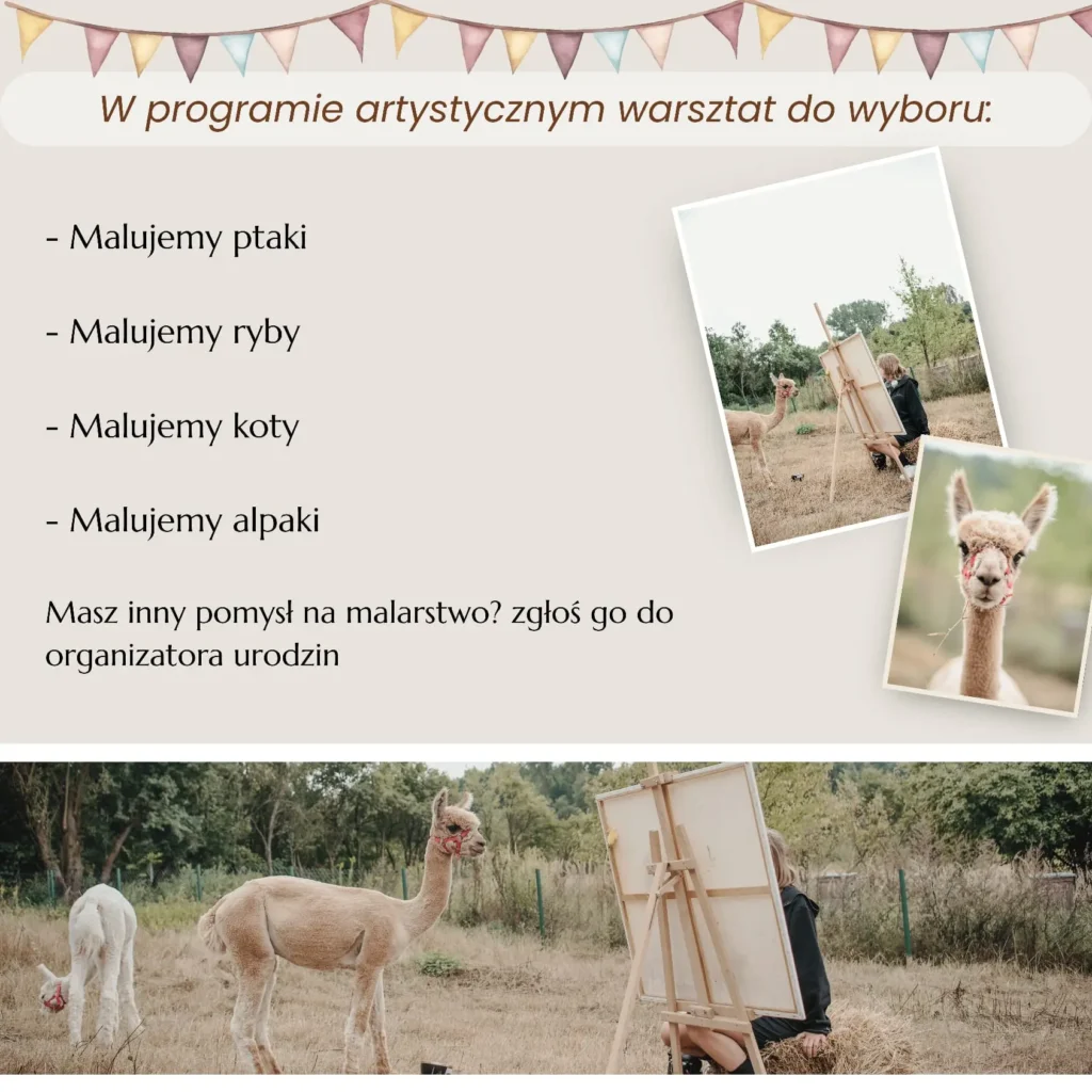Jeśli lubisz sztukę, zabawę i zwierzątka to My zapraszamy Cię do naszego świata. U Nas każde dziecko poczuje się wyjątkowo, a to za sprawą pięknego miejsca, ciekawego programu urodzin i obecności Naszych zwierzątek.