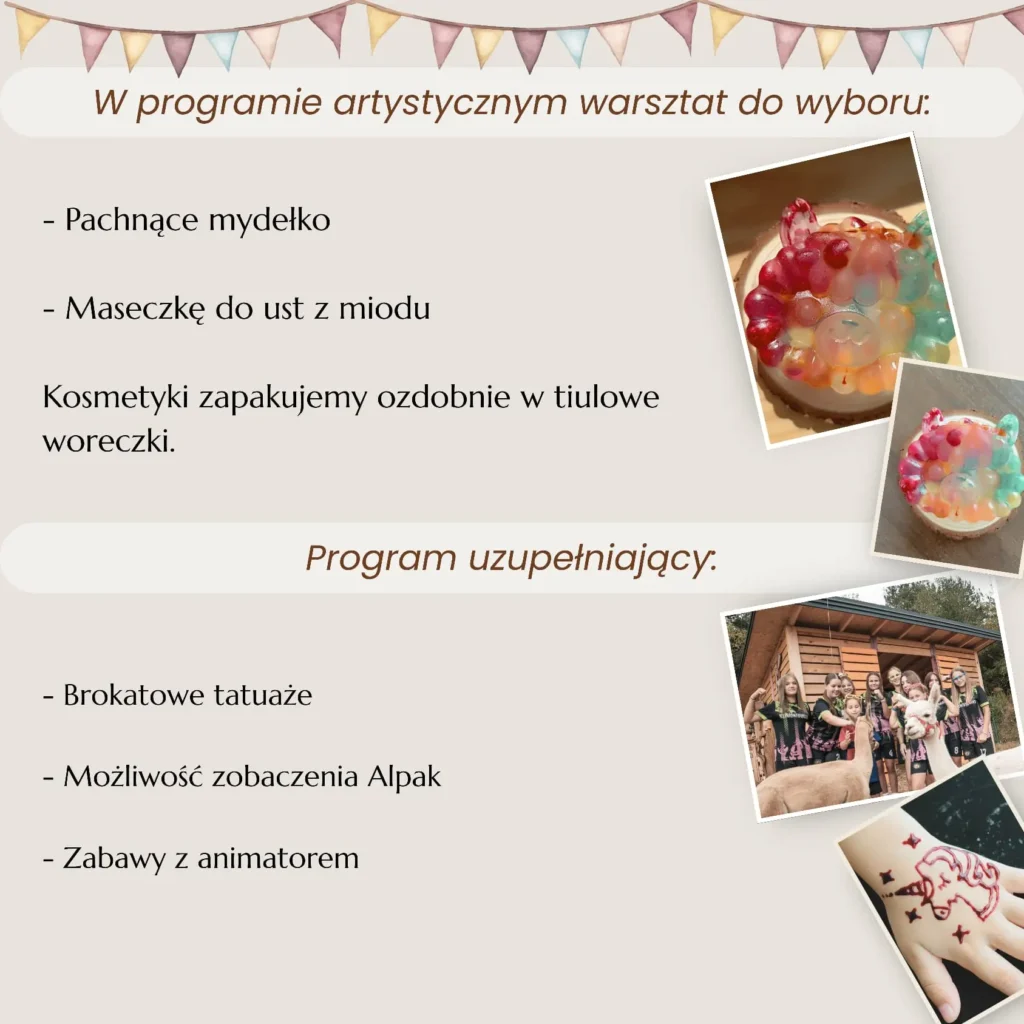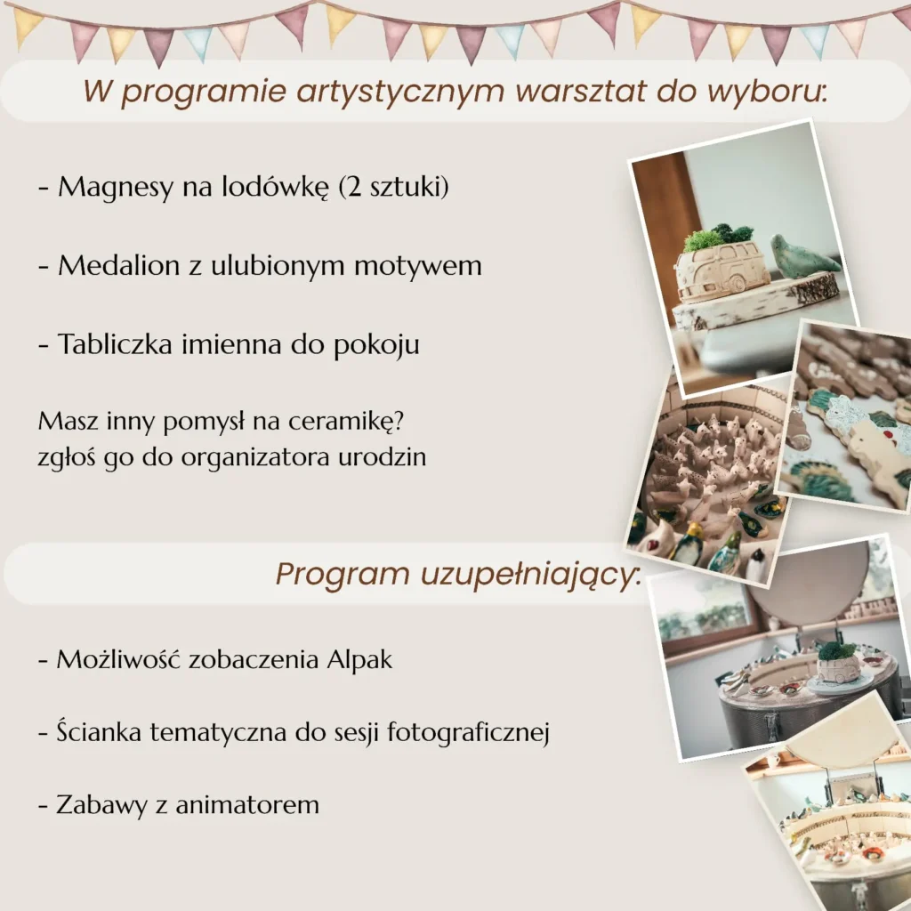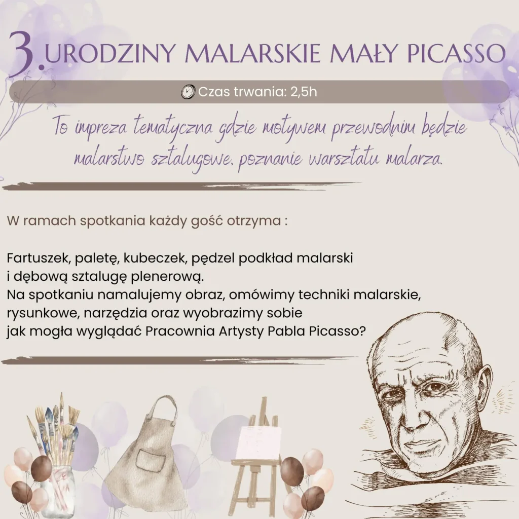 Urodzinki odbywają się przez cały rok w plenerze i w naszej komfortowej Pracowni Artystycznej, gdzie zobaczysz ?A to już jest niespodzianka…